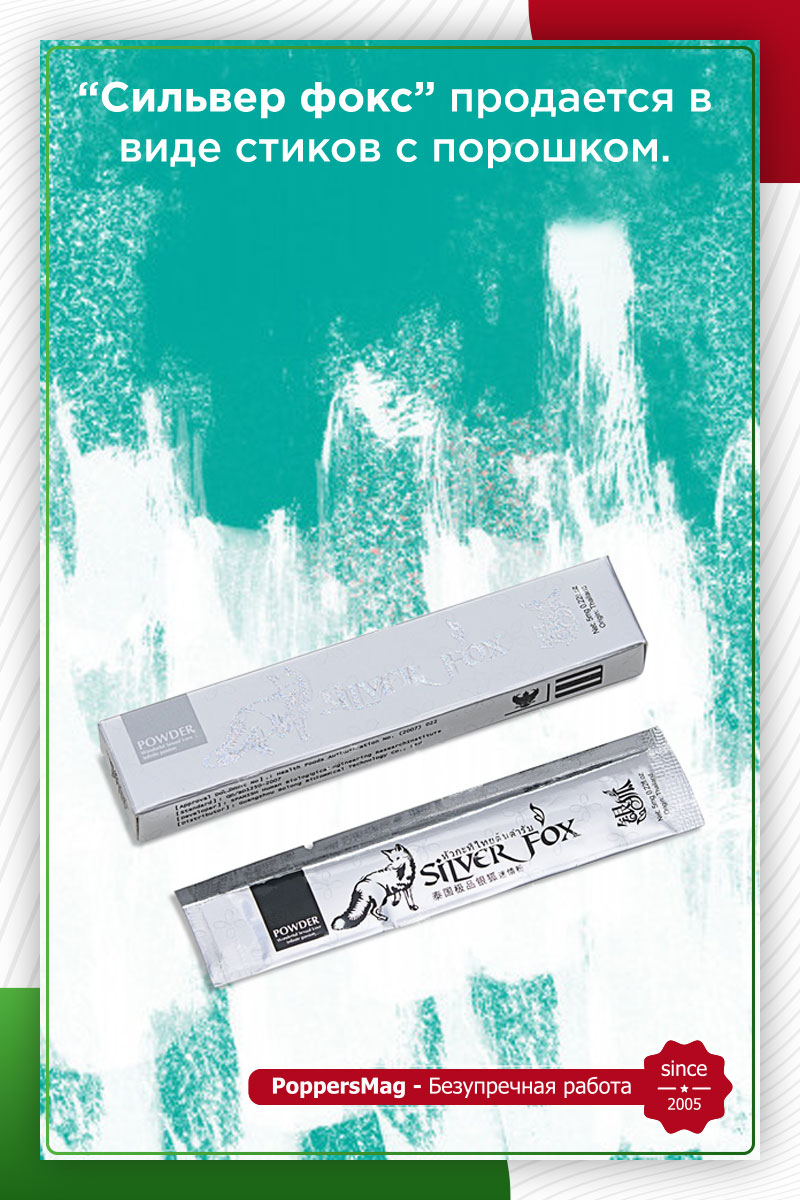 “Сильвер” фокс продается в виде стиков с порошком. В одном пакетике содержится 5 мг средства (максимальная суточная доза препарата). Его следует растворить в теплой воде или другом подходящем напитке. Нельзя растворять препарат в крепких алкогольных или горячих напитках.
