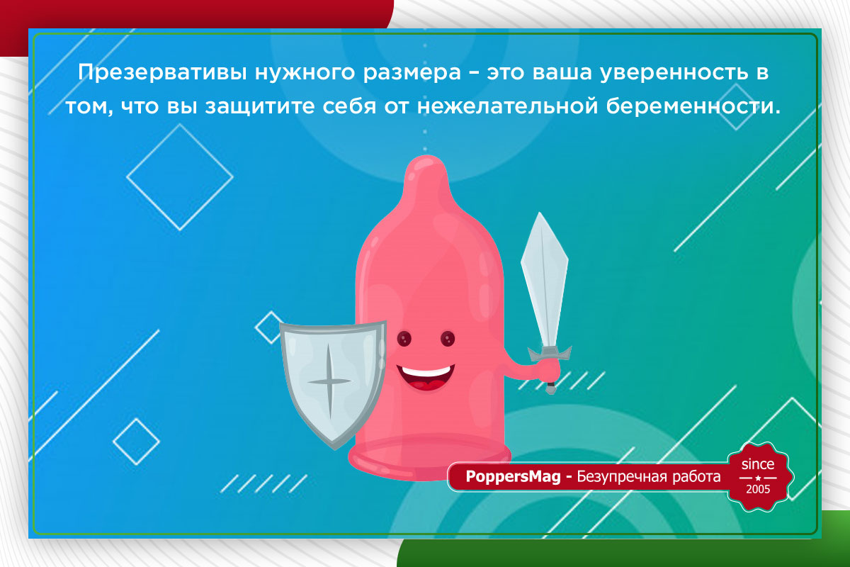 Презервативы нужного размера – это ваша уверенность в том, что вы защитите себя от нежелательной беременности, а также от заболеваний, передающихся половым путем. Большие и маленькие контрацептивы снижают вашу защиту на 15%, а в случае, если узкий презерватив порвется или широкий соскользнет – вы и вовсе останетесь без защиты.