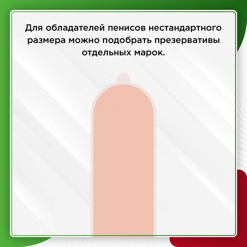 Для обладателей пенисов нестандартного размера можно подобрать презервативы отдельных марок. Например, линейка контрацептивов немецкого производителя “My Size” предоставляет возможность выбрать изделия шириной от 4,7 до 6,9 см. Это один из лучших вариантов презервативов для мужчин, чьи параметры отличаются от стандартов.