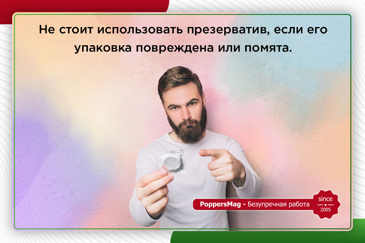 Не стоит использовать презерватив, если его упаковка повреждена или помята. Это может свидетельствовать о неправильности хранения изделий, что, в свою очередь, имеет непосредственное влияние на его пригодность к использованию. Только качественный презерватив может защитить вас от неприятных последствий каждого полового акта.