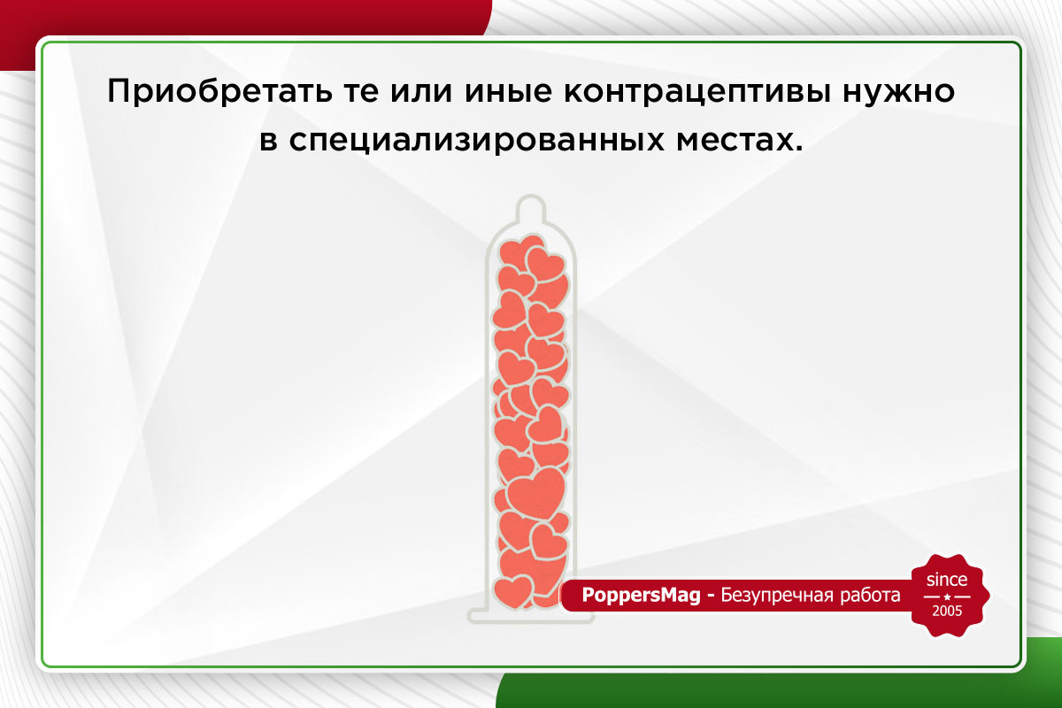Приобретать те или иные контрацептивы нужно в специализированных местах. Таким образом вы сможете избежать приобретения некачественной продукции. Отдавайте предпочтение проверенным и сертифицированным товарам от известных производителей. Обязательно проверяйте сроки годности презерватива перед его использованием, ведь просроченные контрацептивы не обеспечивают достаточной защиты от ЗППП, а также от нежелательной беременности.