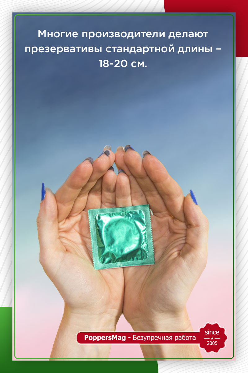 Многие считают, что важную роль играет длина, но это мнение ошибочное. Стандартные презервативы имеют длину около 18 см. Для большинства мужчин такой длины будет достаточно. Даже если изделие окажется слишком длинным или коротким – это практически не повлияет на качество секса.