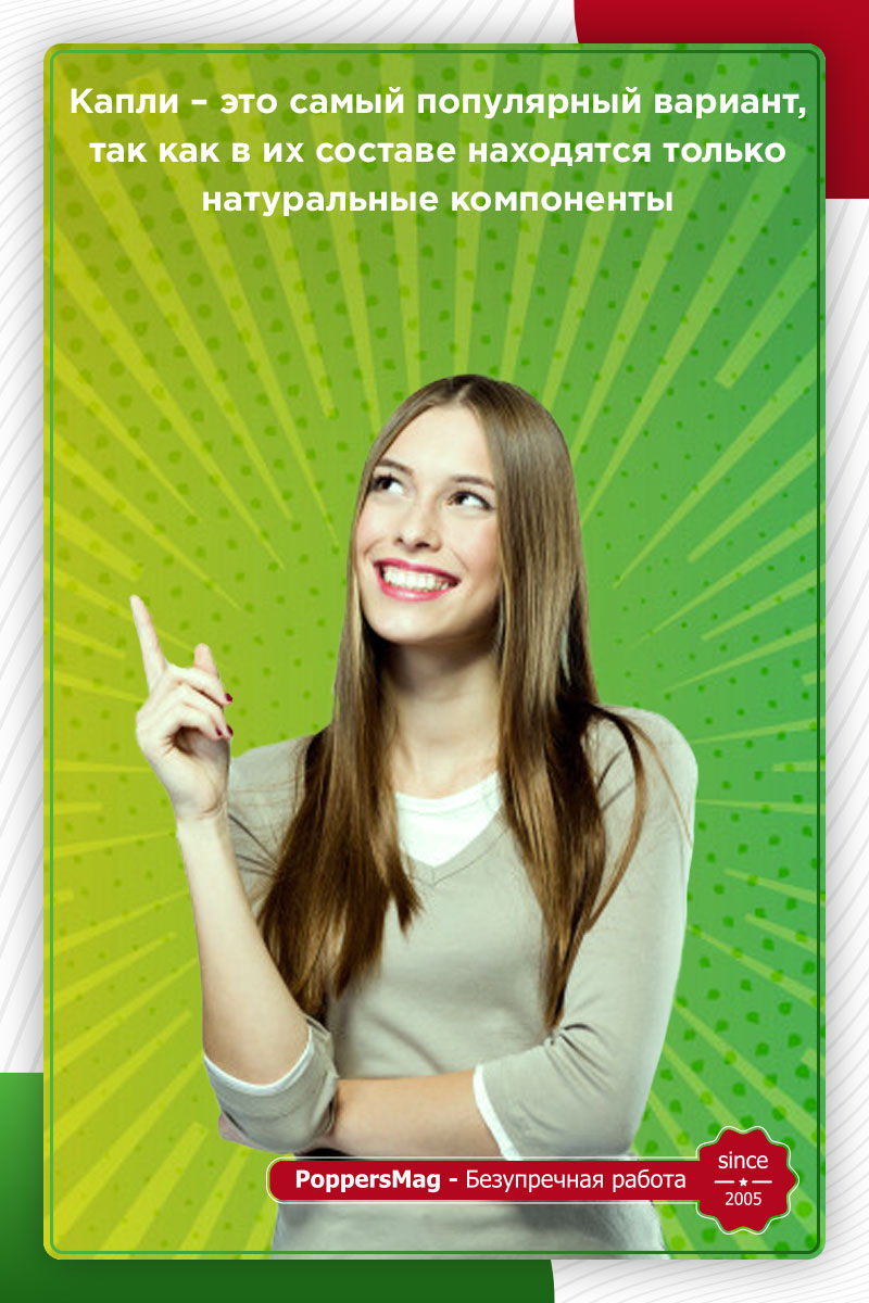 - капли – это самый популярный вариант, так как в их составе находятся только натуральные компоненты, не причиняющие вреда здоровью;