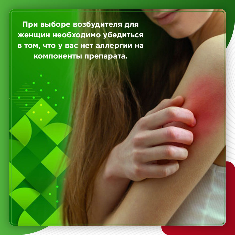 При выборе возбудителя для женщин необходимо убедиться в том, что у вас нет аллергии на компоненты препарата. Если не учесть индивидуальную непереносимость составляющих того или иного средства, вместо удовольствия вы можете получить аллергическую реакцию или другие неприятные последствия. Также учтите и то, что большинство возбудителей нельзя употреблять во время беременности, гипертонической болезни или различных сердечно-сосудистых заболеваниях.