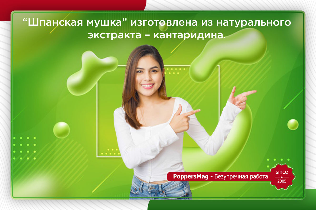 Действующим веществом препарата Шпанская мушка является кантаридин. Это вещество абсолютно натуральное, получают его из крови и половых желез одноименного насекомого. Неразбавленный экстракт Шпанской мушки является чистым ядом, поэтому употреблять капли, не разведенные в жидкости опасно не только для вашего здоровья, но и для жизни. В состав препарата входят также эфирные масла и розмарин. Эти компоненты помогают расслабиться, а также дают укрепляющий эффект.