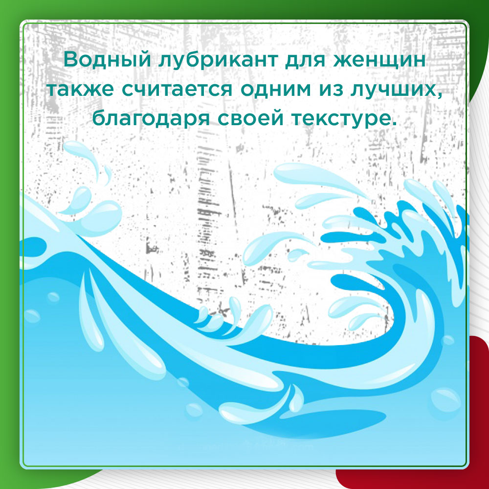 Водный лубрикант для женщин также считается одним из лучших, благодаря своей текстуре. Она легкая и больше всего напоминает настоящую женскую смазку. Кроме того, такие средства имеют оптимальный уровень кислотности – pH от 3 до 4,5. Это свидетельствует о том, что микрофлора влагалища останется нормальной после использования такого лубриканта. Многие производители добавляют в водные смазки витамин E, экстракт ромашки, экстракт алоэ-вера и даже семена льна, которые дополнительно ухаживают за слизистой оболочкой влагалища и питают ее.
