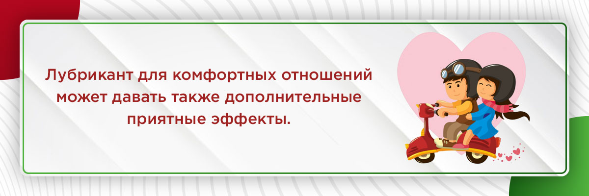 - лубрикант делает занятия любовью более комфортными и уменьшает неприятные ощущения у женщин с чувствительной оболочкой влагалища;