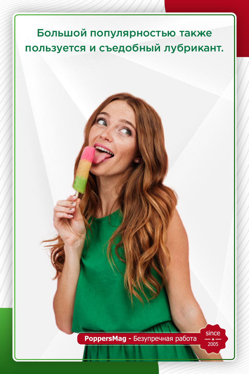 безопасными и содержат в себе минимальное количество компонентов химического происхождения или вовсе изготавливаются без таких добавок. Вкусов у съедобных лубрикантов очень много. Вы можете отдать предпочтение ягодным или фруктовым вкусам, или же выбрать более оригинальный вариант. Обратите внимание на то, что съедобную смазку, в состав которой входит сахар, не рекомендуется использовать для вагинального секса.