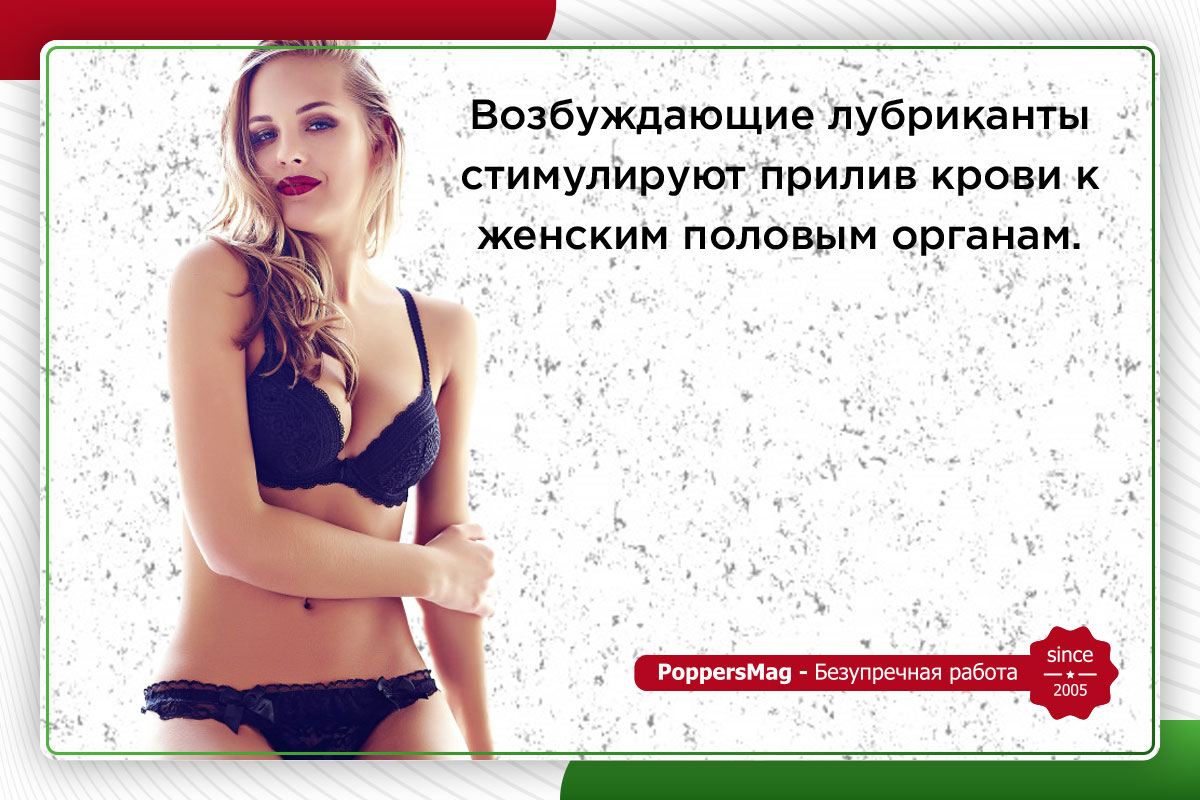 Лубрикант возбуждающий для женщин заслуживает особого внимания. Многие представительницы прекрасного пола не могут расслабиться перед сексом и добиться желаемого возбуждения. В результате, вся сексуальная жизнь для них превращается в рутину и обычный супружеский долг, ведь оргазма при недостаточном сексуальном желании достичь практически невозможно. Возбуждающие лубриканты стимулируют прилив крови к женским половым органам. В результате вы будете готовы к сексу уже через несколько минут.
